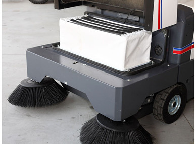 邊刷收集垃圾,將碎屑送至機(jī)器中間位置,位于機(jī)器中間的主刷以高速將垃圾直接擲入垃圾箱內(nèi)。機(jī)器上的大型真空風(fēng)扇所產(chǎn)生壓力將粉塵控制在垃圾箱中??椢镞^(guò)濾系統(tǒng)完成灰塵過(guò)濾,確保了排放物中僅為清潔的空氣。