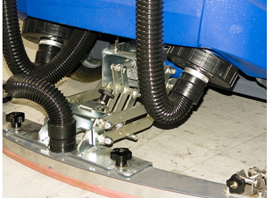 The squeegee relays a very efficient vacuum system. Rubber blades replacement and adjustment can be made without any tool. An innovating lifting - lowering system optimizes the pressure and makes the squeegee lifting quicker when the machine shift to reverse gear.
