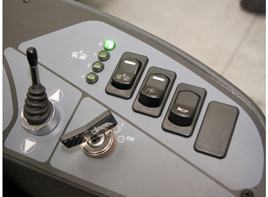 Comfortable and adjustable seat, very large space for legs. Ergonomic seat which guarantees comfortable drivng position to every operator. Large and intuitive control panel, equipped with the "one-touch" button. Thermal switches positioned on the panel.