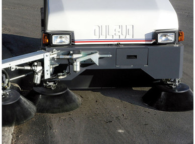 The action of the brooms throws the dust and the debris into a large capacity hopper.