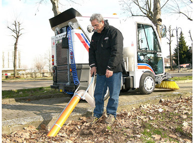DULEVO 850 Mini is a suction motor sweeper. The suction mouth is located on the machine front and is operated by a pantographic lifting device; thanks to its front flap, it can adapt to the volume of the waste to be collected without losing its suction power. The opening width of the mouth in the presence of light (such as leaves)and bulky waste  is controlled from the driver’s seat. The mouth/hopper connecting pipe is external, in full view and without any bending or kinking; a door under the seat provides easy access to the pipe for cleaning purposes. The reduced length of the pipe, in addition to the above characteristics, minimises the risk of clogging. Under the operator’s seat there’s a small door for making esier to clean the hose.
